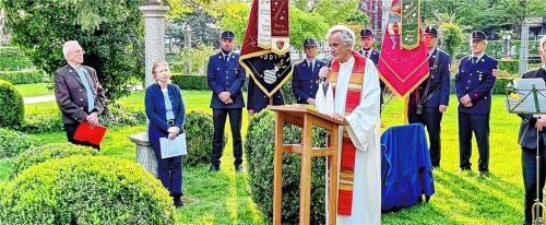 Rund 50 Mitglieder und Freunde des Bayernbundes fanden sich im Rosenheimer Riedergarten an der Patrona-Bavaria-Statue zu einer Andacht zu Ehren der Mutter Gottes ein. Hierzu konnte stellvertretender Kreisvorsitzender Norbert Zehrer neben den Ehrenmitgliedern Adolf Dinglreiter, Elfriede Göppelhuber u