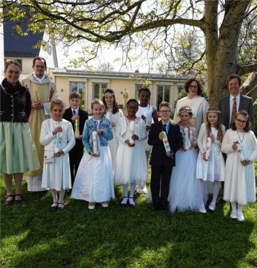 In der Stadtteilkirche Rosenheim Am Wasen haben 69 Kinder miteinander Erstkommunion gefeiert, davon 29 in Pang (unten), 30 in Heilig Blut (oben rechts) und zehn in Oberwöhr (oben links). Vorbereitet auf diesen freudigen Tag wurden die Kinder von der Gemeindereferentin Maria Leutgäb in Zusammenarbeit