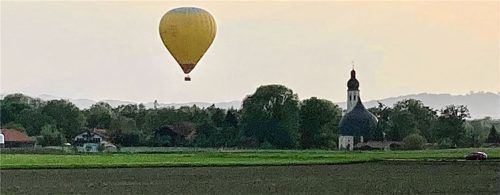 Ein Ballon ist auf einer Wiese in Westerndorf/Pang gelandet. Im Hintergrund ist die malerische Westerndorfer Rundkirche zu sehen. OVB-Leser-Reporterin Eva Höfner aus Rosenheim musste für das Bild nicht einmal aus dem Haus. Sie nahm das Foto von ihrem Balkon aus auf.Foto Höfner