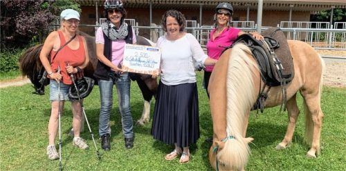 „Mal Schaun“, die Rosenheimer Selbsthilfegruppe für Menschen, die an Multipler Sklerose (MS) erkrankt sind, hat eine 2500-Euro-Spende vom Gewinnsparverein der Münchner Sparda-Bank erhalten. Zur Scheckübergabe trafen sich auf dem Islandpferdehof Auensee in Happing (von links) Melanie Rieder von „Mal