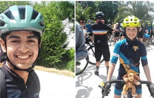 Noch voller Energie: Harri Pottayil (18, links) und Valentin Kühn (13, rechts) mit Trudi am Lenker. Foto Wildauer