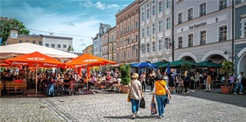 Ferienzeit ist Besuchszeit. Gerade bei schönem Sommerwetter ist die gute Stube der Innstadt, der Max-Josefs-Platz, stark und gerne von Leuten frequentiert, die das breite Angebot der Geschäfte, Gastronomie und Kulturanbieter annehmen. Eine kleine Pause mit einem guten Kaffee in den vielen Cafés ist