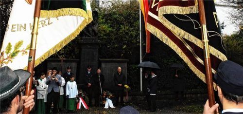 Zweite Bürgermeisterin Gabriele Leicht hielt an der Gedenkfeier zum Volkstrauertag am Kriegerdenkmal unterhalb der Panger Kirche eine kurze Ansprache. Der Aufmarsch der Fahnenabordnungen aller Ortsvereine, Pfarrvikar P. Dariusz Burdalski, der Vertreter der Stadt und des VdK-Ortsverbandes Aising-Happ