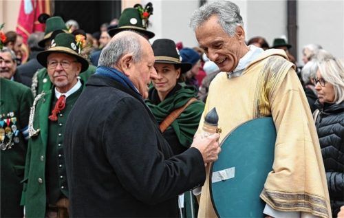 Als Pfarrer Andreas Maria Zach sich von der Stadt verabschiedete, war es für den Bayernbund-Kreisverband Rosenheim und dessen Vorsitzenden Christian Glas ein Herzensbedürfnis, persönlich „Vergelt’s Gott“ zu sagen (Bild). Dabei erklärte Glas: „Pfarrer Zach ist seit 2009 Bayernbundmitglied. Er war uns