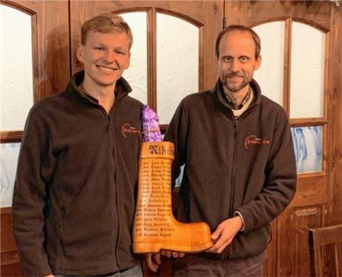 Die Happinger Schützen veranstalteten im Happinger Hof kürzlich wieder das traditionelle Nikolausschießen. Am genauesten zielte dabei Christian Diepelt (links) und gewann den mit Süßigkeiten gefüllten Nikolausstiefel aus Holz. Den zweiten Platz erreichte Josef Moosner und den dritten Platz belegte S