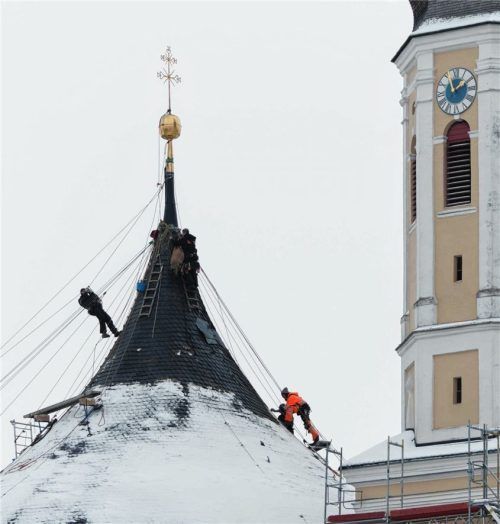 Kletterkünstler an der Westerndorfer Kirchenkuppel