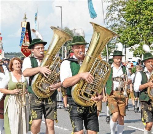 Am Ende des Festzuges fehlten nur ein paar Minuten. Sonst wären alle noch trocken ins Zelt der Feuerwehr Westerndorf St. Peter gekommen. So aber wurden einige ziemlich nass, als ein Wolkenbruch mit Sturm sehr schnell über die Menschen im Festzug hereinbrach. Passiert ist außer nasser Kleider nichts,