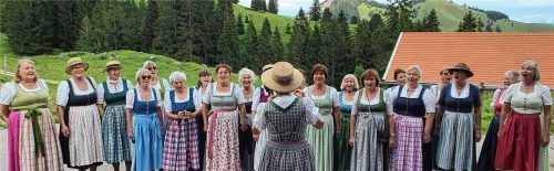 Auch heuer hat die Kreisbäuerin Katharina Kern den Landfrauenchor wieder auf ihre Alm im Sudelfeldgebiet eingeladen. Gerne sind die rund 20 Sängerinnen mit ihrer Leiterin Heide Hauser, bepackt mit schönen Almliedern, begleitet mit Zither, Gitarre und Ziach, auf die Alm gekommen. Ein kurzer Regenscha