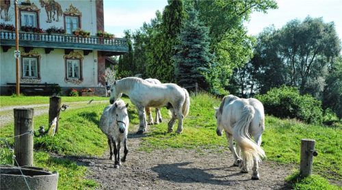 Noch stehen sie auf der Weide in Deutelhausen, doch schon bald werden die edlen französischen Kaltblüter den Festwagen der Flötzinger-Brauerei zur Wiesn ziehen. Die „Percherons“ kommen zwar kohlrabenschwarz zur Welt, aber im Laufe der Jahre werden sie immer heller, bis sie als Erwachsene silbergrau