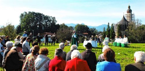 Die Bergmesse auf dem Pfarrerberg zwischen der barocken Rundkirche in Westerndorf am Wasen und dem ehemaligen Pfarrhof, die seit wenigen Jahren organisiert wird, darf durchaus zur Tradition werden, wie die zahlreichen Besucher am Wochenende bewiesen. Die Familie Deutschenbaur aus Oberkaltbrunn hatte