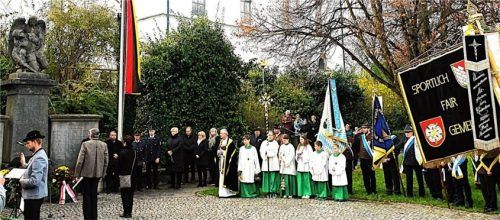 Am Volkstrauertag versammelten sich in Pang viele Kirchgänger, Vertreter der Stadt und des VdK Happing, Aising und Pang vor dem Kriegerdenkmal direkt unter der Panger Pfarrkirche Mariä Geburt. Die Kapelle „Am Wasen“ unter Leitung von Musikkapellmeister Hans Rutz umrahmte die Gedenkfeier an die Krieg