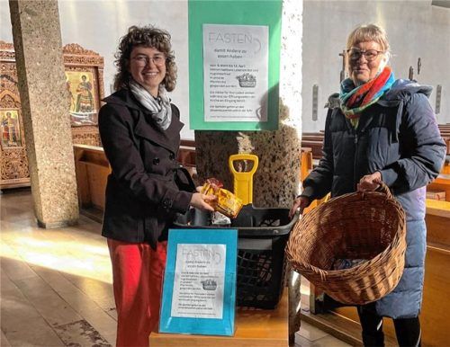 Unter dem Motto „Fasten – damit andere zu essen haben“ starten die katholischen Pfarrgemeinden heuer eine gemeinsame Aktion in der Fastenzeit. Wie hier in der Pfarrkirche St. Hedwig stehen in vielen Pfarrkirchen Körbe oder Einkaufswägen bereit, in die die Kirchenbesucher haltbare Lebensmittel legen