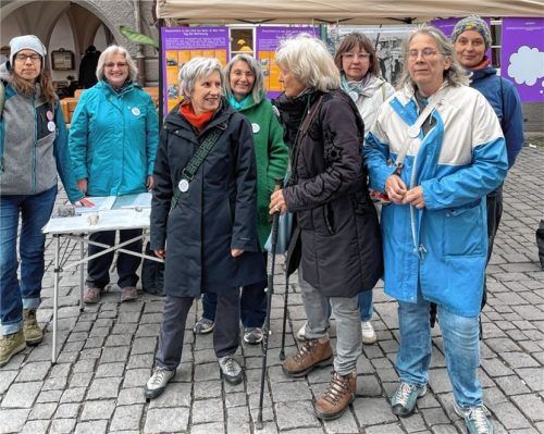 Mit einem Infostand erinnerten die „Omas gegen rechts“ Rosenheim am Donnerstag, 8. Mai, an den „Tag der Befreiung vom Nationalsozialismus“. Gezeigt wurde eine fotografische Ausstellung mit Aufnahmen von Opfern, Kriegszerstörungen und Informationen zu Themen wie Zwangsarbeit und Euthanasie in Rosenhe