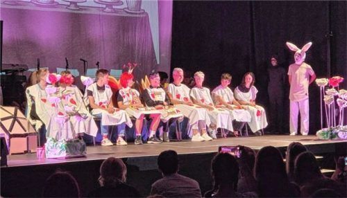 Johann-Rieder-Realschule im Wunderland mit Herzkönigin und Hutmacher