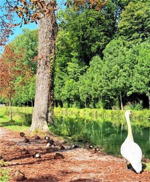 Unser Bild zeigt ein idyllisches, tierisches Mittagsschläfchen am Mangfallkanal in Rosenheim. Der Schwan scheint Wache über die Kleinen zu halten.Foto Pfurtscheller