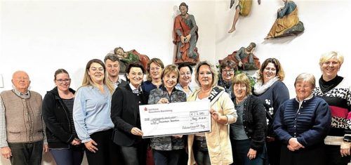 Der Erlös des Adventsmarktes in Pang – eine Rekordsumme von 4.700 Euro – wurde jetzt an das Frauenhaus Rosenheim gespendet. Bei der Übergabe an Leiterin Marita Koralewski (Mitte) dankte Mihaela Hammer, Vorsitzende der Frauengemeinschaft Pang-Aising (Sechste von rechts), allen Vereinen.Foto Knarr