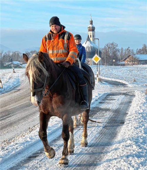 Ross und Reiter genießen die Winteridylle: Vor der Kulisse der Rundkirche von Westerndorf am Wasen hielt sie unserer Mitarbeiter beim morgendlichen