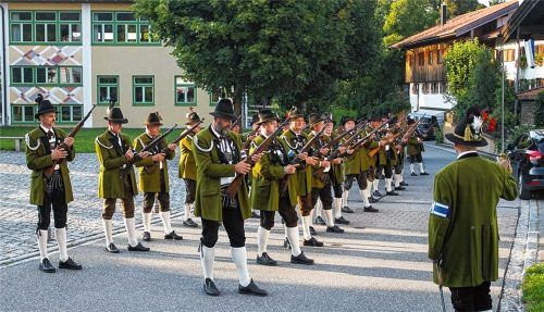 „Hoch – legt an!“ ertönt das Kommando. Es richtet sich an die zum Ehrensalut angetretenen 30 Flintsbacher Gebirgsschützen. Am Kriegerdenkmal wird es trotz der mehreren Hundert Teilnehmer, die sich zum Totengedenken anlässlich des 65-jährigen Wiedergründungsjubiläums der Flintsbacher Gebirgsschützenk