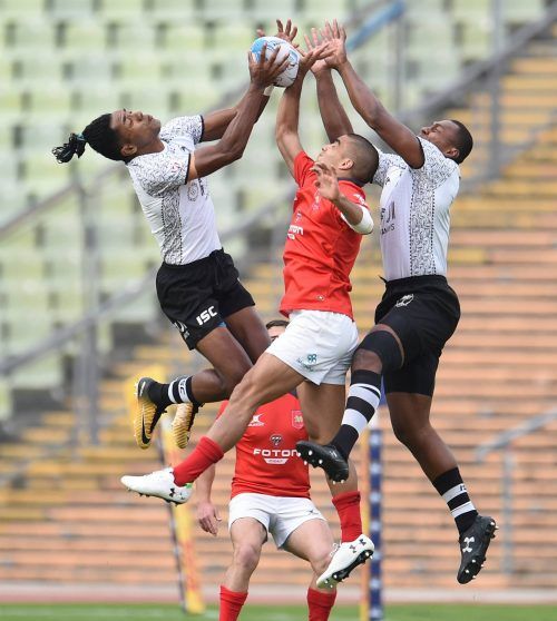 Mit harten Bandagen wurde am Freitag unter dem Münchner Zeltdach gekämpft. Beim Rugby-Turnier „Oktoberfest 7s“ stritten sich zwölf Siebener-Mannschaften im Olympiastadium um den ovalen Ball. Auf unserem Foto bedrängen die Fidschi-Spieler Anare Tevite (l.) und Jone Koronisagana (r.) den Chilenen Javi
