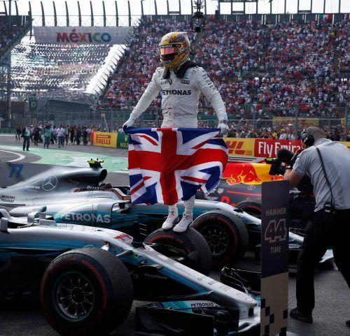 Mexiko-Stadt – Mit dem wehenden Union-Jack in der Hand drehte Lewis Hamilton seine Titelehrenrunde, dankte mit belegter Stimme seinem Mercedes-Team und bekam noch im Auto die Glückwünsche von Kumpel Neymar. Der 32 Jahre alte Brite kürte sich trotz eines Plattfuß-Dramas nach einer S