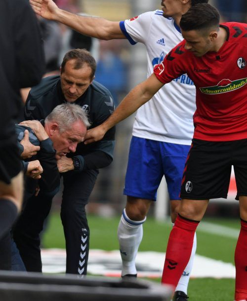 Abgeräumt vom eigenen Spieler Auweia – selbst Trainer Christian Streich blieb vom Verletzungspech des SC Freiburg nicht verschont: Gleich zu Beginn der Heimpartie gegen Schalke 04 rauschte ihm sein Schützling Janik Haberer an der Seitenlinie ungewollt in die Beine. Der 52-jährige Coach stürzte und t