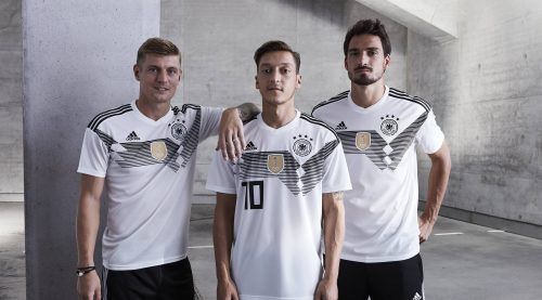 DFB im 90er-Stil nach Russland: Mit einer Reminiszenz an die legendären Trikots von 1990 will die deutsche Nationalmannschaft in Russland zu ihrem fünften WM-Titel stürmen. Die gestern vom DFB und adidas präsentierten Trikots sind wie beim Titel vor 27 Jahren in Italien mit einem gezackten Brustring