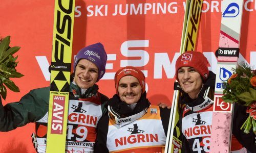 Titisee-Neustadt – Richard Freitag und Andreas Wellinger herzten sich im Auslauf, mit einer Umarmung feierten sie den nächsten Doppelerfolg der deutschen Skispringer. Stunden des Wartens wegen 20 Zentimeter Neuschnees, starken Windes und heftigen Regens waren bei Zuschauern un