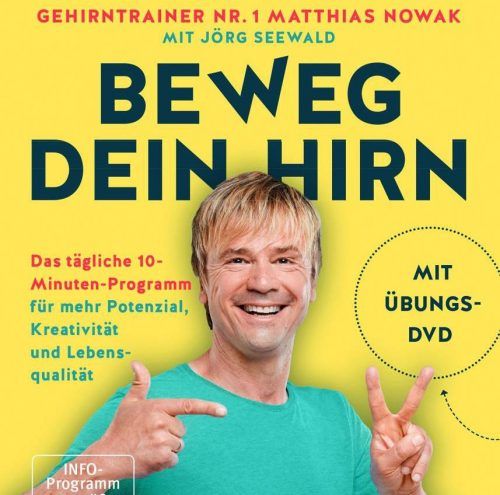In dem Buch „Beweg dein Hirn“ hat der Kreativcoach Matthias Nowak gemeinsam mit dem Journalisten und Autoren Jörg Seewald ein tägliches Zehn-Minuten-Programm niedergeschrieben, mit dem jeder seine mentale Fitness spielend leicht mit nur wenigen Übungen steigern kann. Das 192 Seiten fassende Werk (GU