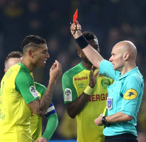 Ein Fall, ein Tritt, ein Platzverweis: Schiedsrichter Tony Chapron hat beim 1:0-Sieg in der französischen Ligue 1 von Paris St. Germain beim FC Nantes für Fassungslosigkeit gesorgt. In der Nachspielzeit ließ er sich zu einem Nachtreten hinreißen. Die Konsequenz folgte sogleich. Die skurrile Szene li