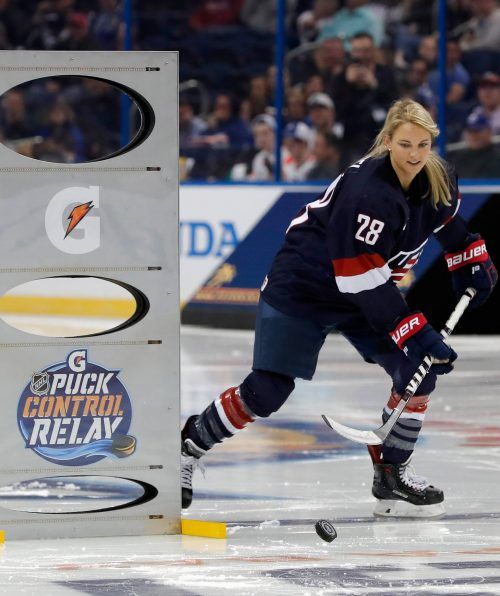 Frau am Puck beim All-Star-Wochenende der NHL. Amanda Kessel, Starspielerin des US-Nationalteams (demnächst bei Olympia), machte als Gast beim Puckkontrolle-Wettbewerb mit, wo Johnny Gaudreau (Calgary) der Beste war. Die Skills-Competitions gingen an Alexander Owetschkin (Washington/härtester Schuss