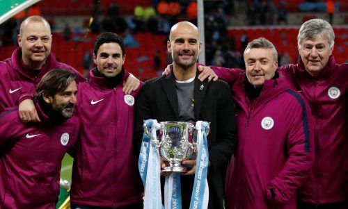 Pep Guardiola herzte jeden Spieler, strahlte über das ganze Gesicht und genoss die Pokalübergabe in vollen Zügen. Der Spanier freute sich diebisch über seinen ersten Titel als Trainer von Manchester City. Zuvor hatte sein Team um Ilkay Gündogan und Leory Sané im Finale des Ligapokals den FC Arsenal