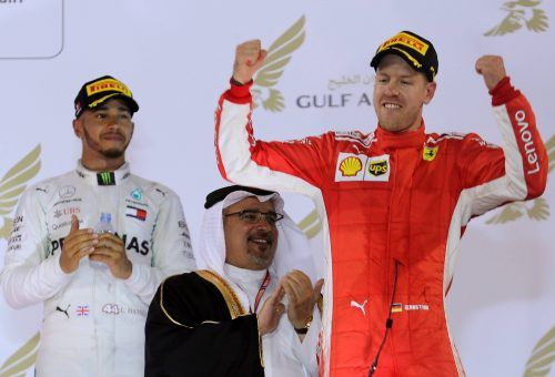 Sakhir – Sebastian Vettel hüpfte total erleichtert auf das Siegerpodest und streckte den berühmten Vettel-Finger in den Nachthimmel von Sakhir. Nach einem echten Krimi in der Formel 1 hatte der Ferrari-Star mit einer waghalsigen Reifenstrategie beim Großen Preis von Bahrain h