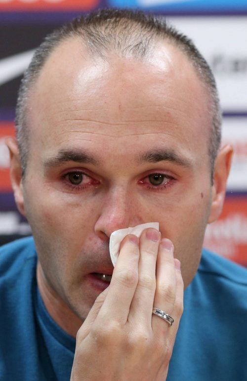 Mit vielen Tränen hat sich Andres Iniesta (Foto) nach 22 Jahren im Club und 16 Jahre nach seinem Profidebüt vom FC Barcelona verabschiedet. Der offensive Mittelfeldmann gab seinen Weggang zum Saisonende am Freitag nach dem Training des Teams von Superstar Lionel Messi und Nationaltorwart Marc-Andre