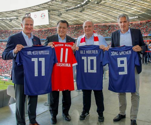 Der FC Bayern und der japanische Fußballverband werden künftig eng zusammenarbeiten. Bereits seit 2016 unterhält der Meister in Hiroshima eine Fußballschule, nun soll die Kooperation mit Trainerlehrgängen, Workshops und Juniorentestspielen intensiviert werden. Zur Besiegelung der Zusammenarbeit posi