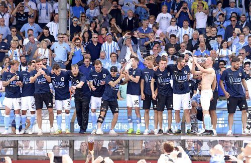 München – Quälende fünf Minuten Nachspielzeit mussten die abgekämpften Löwen ertragen, ehe sich mit dem Schlusspfiff ein Wunder biblischen Ausmaßes vollzog. Lahme waren schlagartig wieder quicklebendig. Der verletzte Youngster Noel Niemann humpelte mit Donjoy-Schiene auf den Platz,