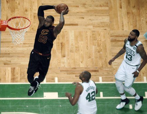 Mit einem spektakulären Kraftakt im siebten Playoff-Match des NBA-Halbfinales gegen die Boston Celtics hat Basketball-Superstar LeBron James (l.) entscheidend dazu beigetragen, dass die Cleveland Cavaliers – trotz eines zwischenzeitlichen 2:3-Rückstands – doch noch mit 4:3 Siegen in die Finalrunde e