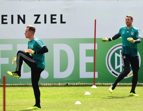 Eppan – 7:1 hat die A-Nationalmannschaft das erste von zwei internen Trainingsspielen gegen die U 20 gewonnen. Es ging über 60 Minuten, Marc-Andre ter Stegen spielte die erste Halbzeit, Manuel Neuer die zweite. Ter Stegen bekam den Gegentreffer, einer vom DFB-Personal, der von Berufs wegen zuschauen