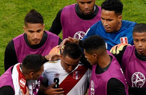 Peruanischer TeamgeistKollektiven Trost spendeten Perus Spieler ihrem Teamgefährten Christian Cuevas, der beim Stand von 0:0 einen an ihn verschuldeten Elfmeter übers dänische Tor schoss. Zur Halbzeit versammelte sich fast die gesamte Mannschaft um Cueva, um ihn aufzurichten. Peru blieb das Pech abe