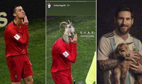 Beim Barte des Propheten Cristiano Ronaldo schweigt zu seiner Jubelgeste, als er sich gegen Spanien übers Kinn strich, als habe er einen Ziegenbart – doch sein Kumpel Ricardo Regufe bestätigte nun mit einer Fotomontage auf „Instagram“, dass es wie vermutet tatsächlich eine Anspielung auf Lionel Mess