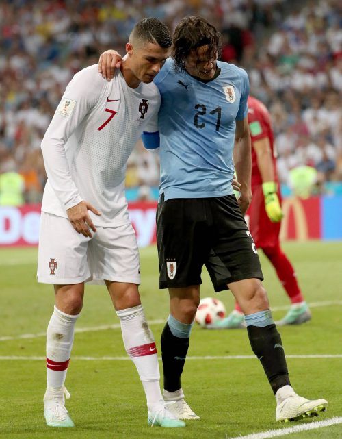 Im Schmerz vereintIn den letzten Minuten der Achtelfinal-Partie zwischen Uruguay und Portugal (2:1) hat sich Cristiano Ronaldo – für die große Zahl seiner Kritiker überraschend – als Sportsmann gezeigt, indem er seinen verletzten Kontrahenten Edinson Cavani vom Platz geleitete. Humpelnd Seite an Sei