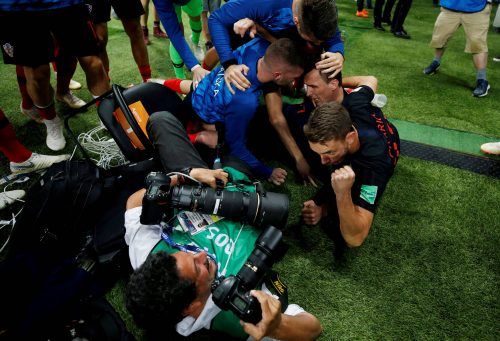 Der Abend in Moskau hat viele schöne Bilder geschaffen, aber kaum jemand fing spektakulärere Motive ein als Yuri Cortez. Der mexikanische Fotograf der Agentur AFP fand sich nach dem Siegtreffer durch Mario Mandzukic zu seiner eigenen Überraschung in der Jubeltraube der Kroaten wieder. Seine professi