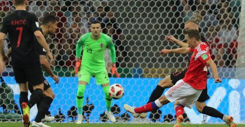 Platz 7: Denis TscheryschewEs schien, als würde das russische WM-Märchen seine Fortsetzung finden: Als Denis Tscheryschew den Ball aus 25 Metern in den linken Torwinkel drosch, stand ein ganzes Land Kopf. Und auch wenn die Kroaten die Partie am Ende noch zu ihren Gunsten entschieden – das herrliche