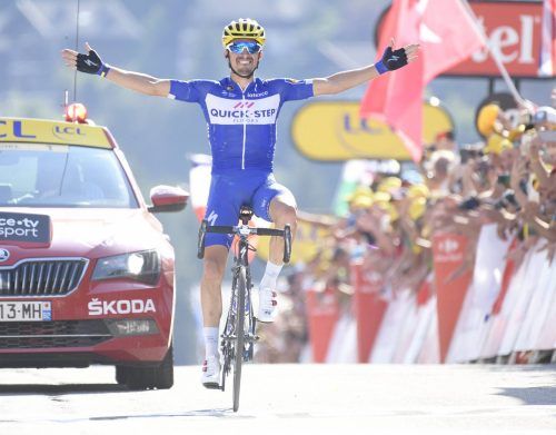 Le Grand-Bornand – Allez les Bleus! Zwei Tage nach dem WM-Triumph der französischen Fußballer hat Julian Alaphilippe auch den Radprofis der Grande Nation einen Festtag beschert. Im blauen Outfit seiner Quick-Step-Mannschaft gewann Alaphilippe die erste Alpenetappe nach Le Grand-Bornand und sorgte fü