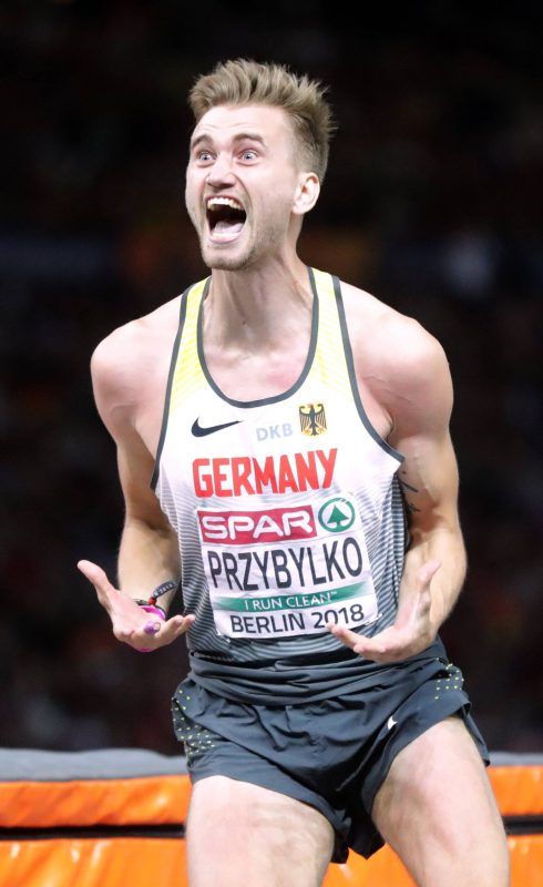 Die Flugshow des Hochspringers Mateusz Przybylko zählte zu den Höhepunkten dieser EM. Der Leverkusener überwand 2,35 m und feierte temperamentvoll sein Gold. Foto: dpa