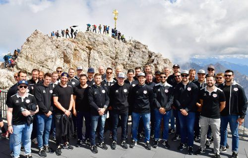 Die Eishockey-Meister als Gipfelstürmer: Bevor das Team des EHC München heute Abend beim Einladungs-Turnier in Garmisch-Partenkirchen gegen Bern ran muss, hat es den Tross auf die Zugspitze verschlagen. Mit der neuen Seilbahn ging es hinauf auf Deutschlands höchsten Gipfel. Die Mutigen trauten sich