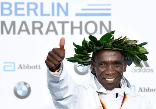 Der Kenianer wird seiner Favoritenrolle gerecht und verbessert beim Berlin-Marathon den Weltrekord gleich um 1:18 Minuten