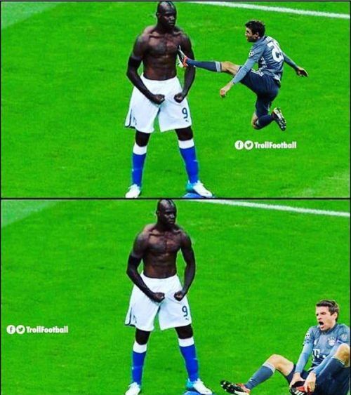 Mario Balotelli hat das mit Rot sanktionierte Foul von Thomas Müller in Amsterdam mit einer Fotomontage durch den Kakao gezogen. „Nur ein Witz – Respekt, du bist ein fantastischer Spieler“, schrieb der Italiener dazu auf Instagram. Müller hofft, dass er nur zwei Spiele gesperrt wird. awe
