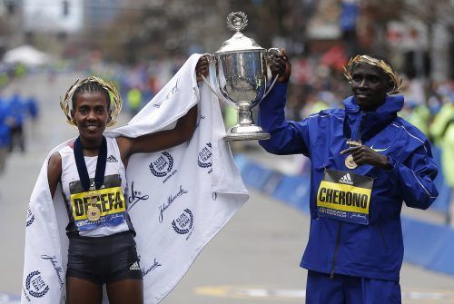 Die Äthiopierin Worknesh Degefa und der Kenianer Lawrence Cherono waren die Sieger beim123. Boston-Marathon. Bei den Männern fiel die Entscheidung erst auf den letzten Metern. Cherono überquerte in 2:07:57 Stunden als Erster die Ziellinie; zwei Sekunden später folgte der Äthiopier Lelisa Desisa, der