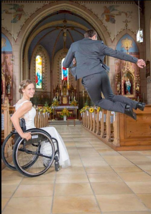Freudensprung vor dem Traualtar