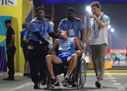 Die Bilanz der ersten Tagen der Leichtathletik-WM in Doha ist nicht zuletzt eine medizinische. Von den 68 gestarteten Marathonläuferinnen mussten sich 30 in ärztliche Behandlung begeben; deren 28 gaben in dem Nachtrennen bei 32 Grad und 73 Prozent Luftfeuchtigkeit auf. Der Rollstuhl wurde zum Symbol